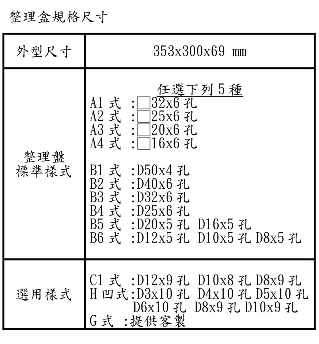 - 規格:車床銑床刀具,刀桿,刀套整理盒,刀具整理盒 金屬板件組成,刀具尺寸板可更換